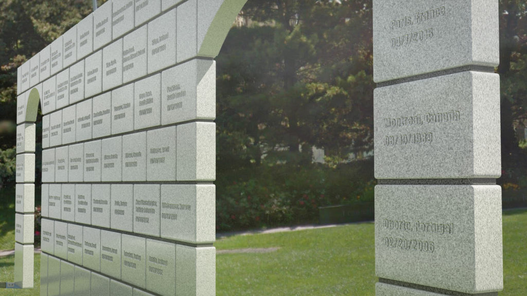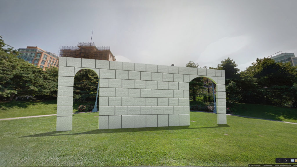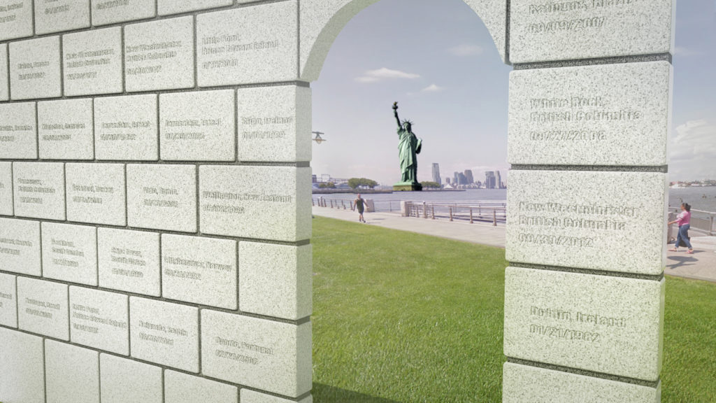 Tarrant’s submission for the memorial honored, but also brings awareness to the continued fight the LGBT community still has in front of them. The design entailed an actual stonewall, an exact scaled replica of the façade of the Stonewall Inn, to honor the significant impact the Stonewall riots had in raising awareness for equal rights for the LGBT community. But also the struggles the LGBT community still faces. The stones would be “pillow blocks” similar to those found at the foundation of older banks and government buildings downtown to symbolize institutionalized anti-gay policies prevalent in America before and after the Stonewall riots. Each stone on the wall will represent a victim of homophobic violence from around the world. The stone wall will represent all victims of hate, intolerance and violence in the LGBT community. The arches give one a view of the Statue of Liberty and all the hope and promise it symbolizes.